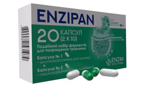 Enzipan is a combination, two - stage preparation that contains a complex of enzymes to ensure physiological digestion in the stomach and intestines.